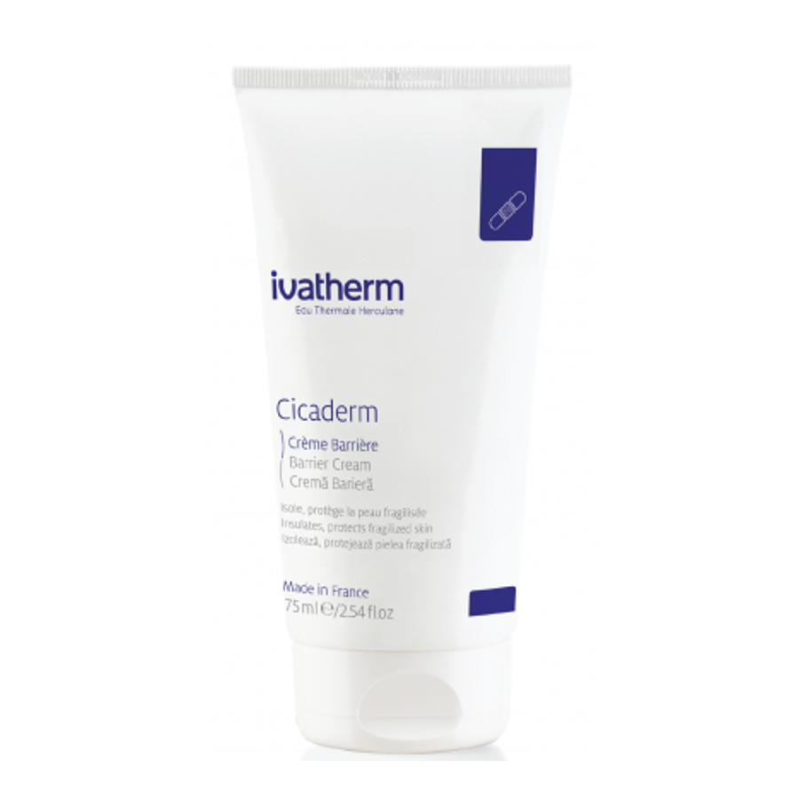 Cicaderm Cremă Bariera, izolează, protejează pielea fragilizata, 75ml, Ivatherm Izoleaza, repara și protejeaza pielea expusa accidental sau constant substantelor iritante sau alergene. Recomandata in cazul folosirii zilnice a manusilor de latex: medici, lucratori in alimentatie, hair stylisti etc; iritatiilor produse de substante chimice folosite in menaj sau activitati industriale, expunerii zilnice la detergentii de vase, iritatiilor produse de produse cosmetice, vopseluri, diversi poluanti din atmosfera. Formeaza o bariera protectoare la nivelul pielii impotriva factorilor poluanti, iritanti si alergeni. Reface integritatea pielii, calmeaza si asigura confortul pe termen lung. Previne si reduce riscul dezvoltarii dermatitei de contact.
